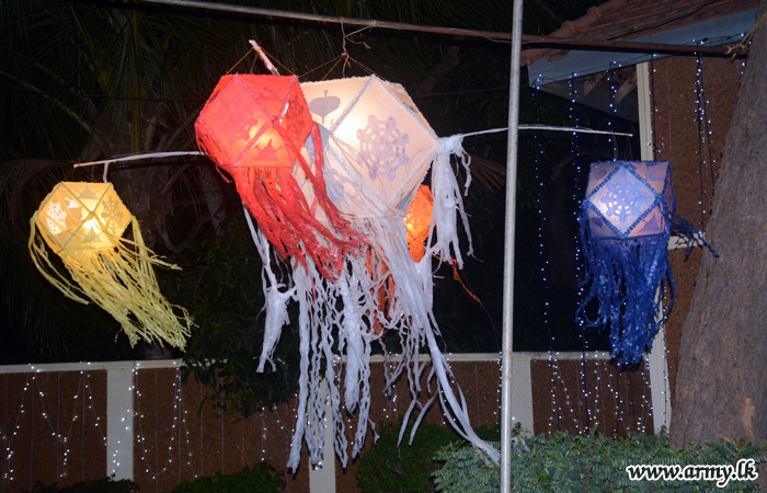 Meanwhile, Forward Maintenance Area HQ of the Security Force HQ- Mullaittivu put up a Poson zone around it and displayed Poson lanterns. The Poson zone was opened by Major General Deepthi Jayathilake, Commander, Security Forces, Mullaittivu. |