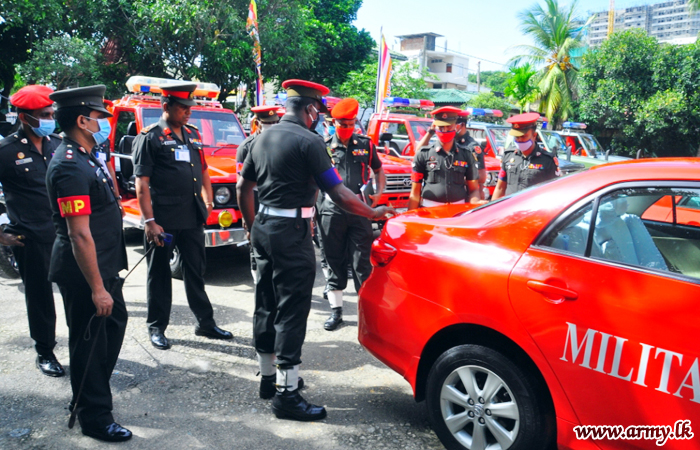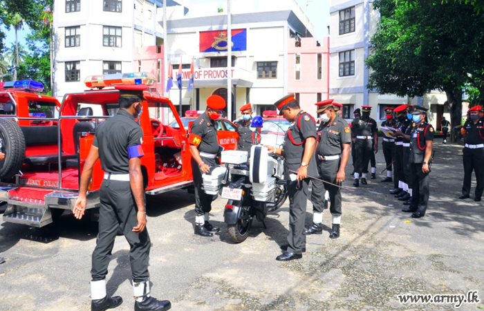 The Provost Marshal Brigadier A L Illangakoon carried out an inspection of Military Police Ceremonial Escort Vehicles at the Sri Lanka Corps of Military Police Regimental Headquarters in Narahenpita on Tuesday (09).