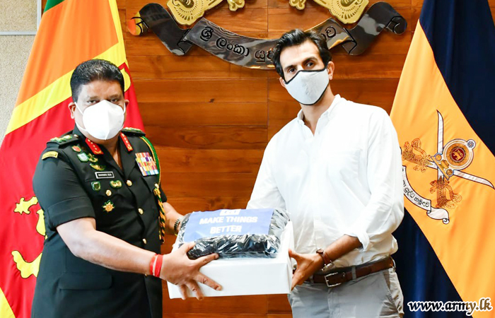 A company delegation led by Mr Navein Perera called on Lieutenant General Shavendra Silva and gifted those Camouflage colour face masks for distribution among Army troops conducting COVID-19 control work.