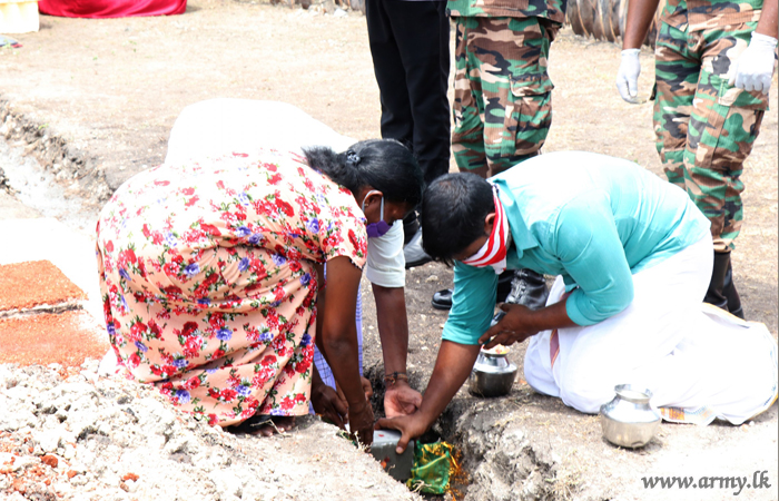 Major General Ruwan Wanigasooriya, Commander, Security Forces - Jaffna continuing the Security Force Headquarters - Jaffna’s house construction project further for the benefit of poor people laid the foundation stone for construction of one more new house to a poor family in Pungudattivu, Jaffna during a brief ceremony organized on Monday (22).