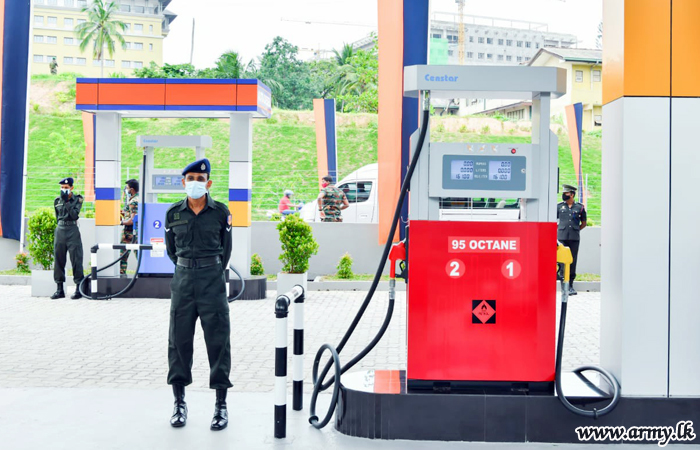 The Army-constructed new filling station at the Sri Jayawardenepura Army Headquarters, which matches with the newly-beautified surroundings was opened this morning (25) in a simple ceremony.