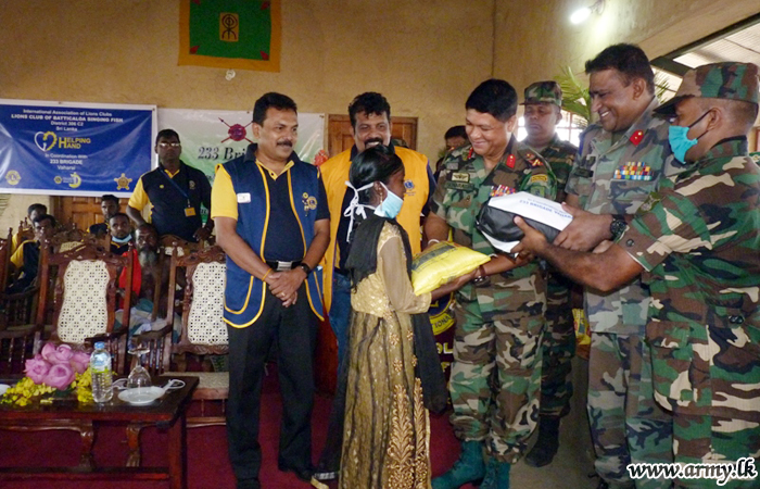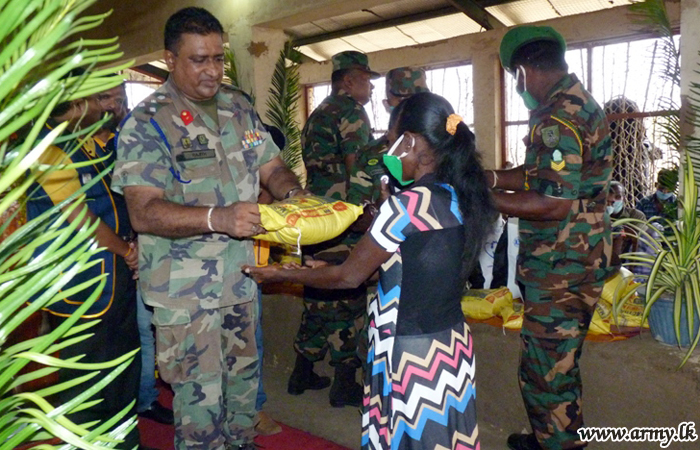On the guidelines given by Major General Senarath Bandara, Commander, Security Forces - East, troops of the 233 Brigade under the 23 Division distributed 153 dry ration packs, worth about Rs 3 Lakhs among needy families in Madurankernikulam village on Tuesday (23), following sponsorship, provided by members of the 306 C2 Lions Club - in Batticaloa. The distribution was initiated by troops and took place at the Cultural Centre in Kunjankulam.