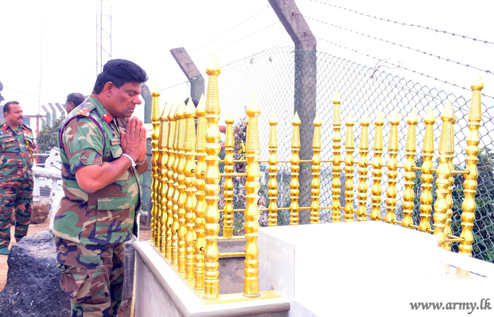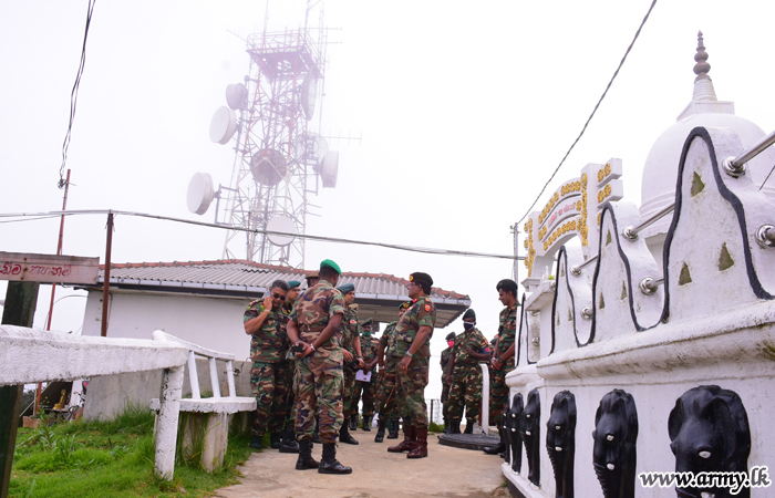 Afterwards, the visiting Senior Officer took time off to meet 3 SLSR troops serving at the Pidurutalagala Transmission Tower and paid his respect to the Buddhist temple, situated on the highest point of Nuwara Eliya and Sri Lanka. |