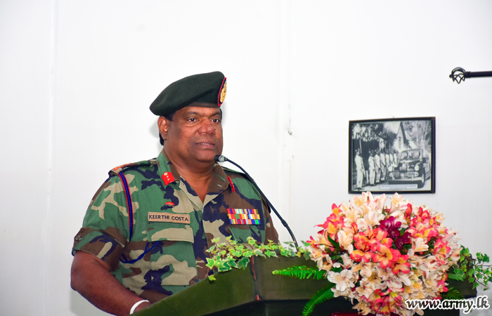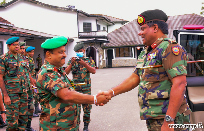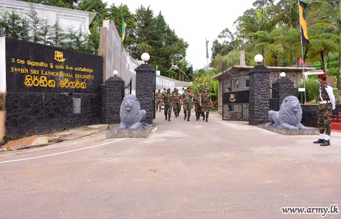 Major General Keerthi Costa, Commander, Security Forces - Central (SFHQ-Cen) undertaking formal visits to areas of his responsibility arrived at 3 Sri Lanka Sinha Regiment (SLSR) camp in Nuwara Eliya on Monday (29) greeted the day's Chief Guest.