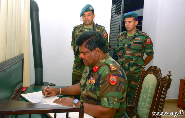 After the customary troop address, Major General Keerthi Costa took time off to share refreshments with all ranks. Before he left the premises, he also did not forget to leave memories in the Visitors’ Book. Major General W.M.J.R.K Senarathna, General Officer Commanding, 11 Division, Brigadier E.A.P Ediriweera, 112 Brigade Commander and a few senior Officers were also associated with the Central Commander’s visit.