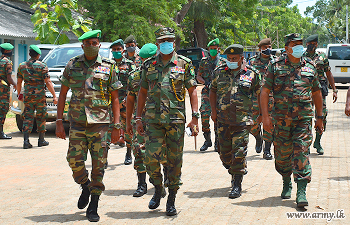 Commander, Security Forces – Wanni, Major General Dhammika Jayasinghe with the objective of evaluating security arrangements in place in connection with the forthcoming Madu feast visited the 544 Brigade area, together with Major General Indrajith Bandara, General Officer Commanding, 54 Division on Tuesday (30).