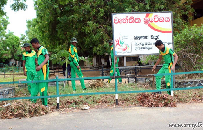 The project covered Kumburupiddi Tamil Mixed School, Vivekananda Tamil Maha Vidyalaya and Sinhala Maha Vidyalaya where Navy, Police, Civil Security Department personnel and staff at the Governor’s Office Trincomalee, Public Health Inspectors, teachers and parents also joined hands with the troops for this worthy project.