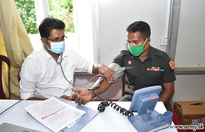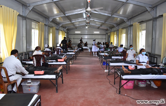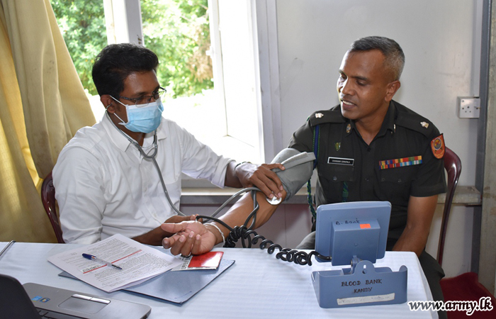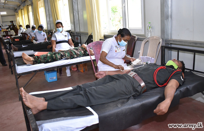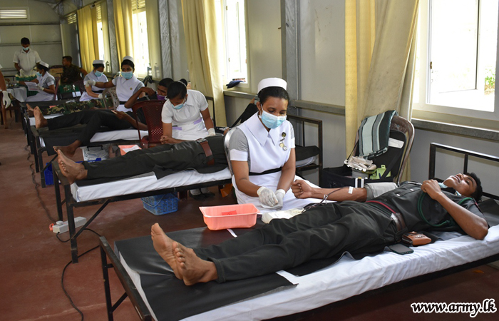 A few more than 150 Officers and Other Ranks of the 11 Division Headquarters at Pallekele on the guidelines given by Major General Jaliya Senarathna, General Officer Commanding, 11 Division offered their blood for use of patients at Kandy General Hospital on Wednesday (1).