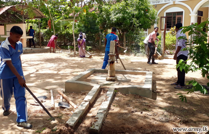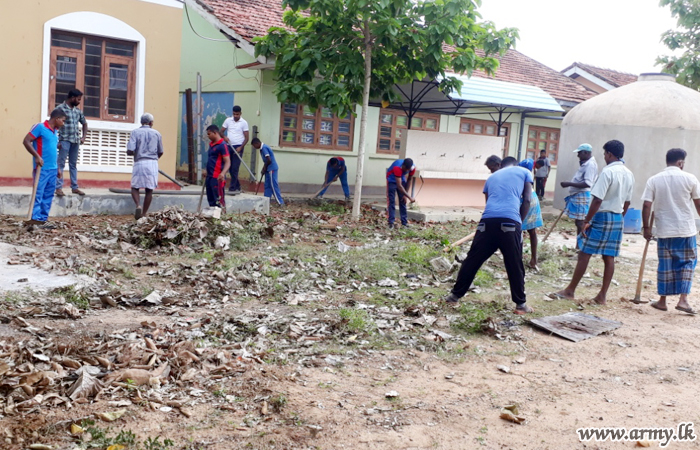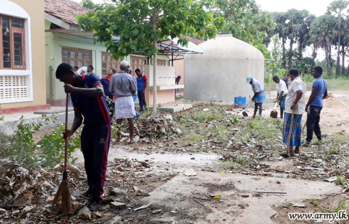 Troops of 7 Sri Lanka National Guard (SLNG) in order to prevent any outbreak of Dengue in the area conducted a cleaning campaign at Akkarayankulam Maha Vidyalaya premises on 30 June.