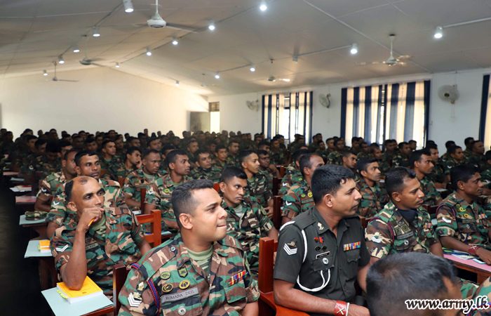 A lecture, themed on “Better family life through attitude development,” organized by the Directorate of Psychological Operations was conducted by Lieutenant Colonel B.G.S Samanthi of the Directorate on the guidelines given by its Director Brigadier Manjula Karunaratne on Thursday (9) at the Sri Lanka Artillery Training School .