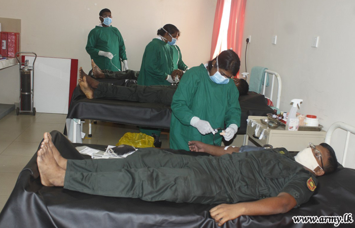 Those troops under the guidance of Major General D.G.S Senerath Yapa, the General Officer Commanding - 57 Division, considering the emergency need of the patients in Kilinochchi donated their blood in this way.