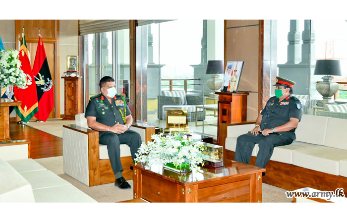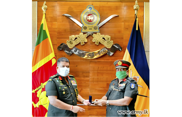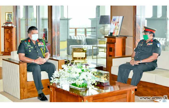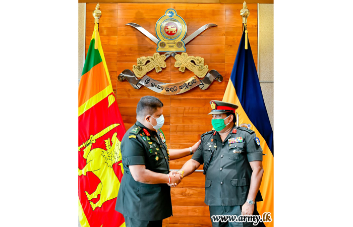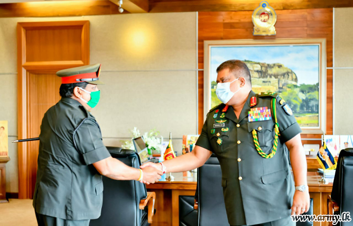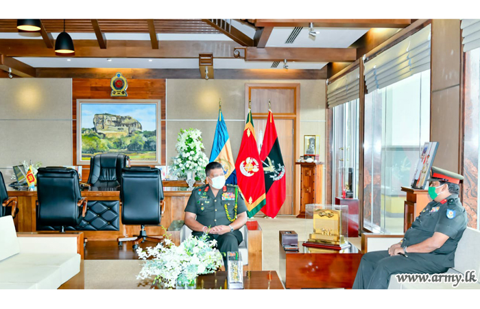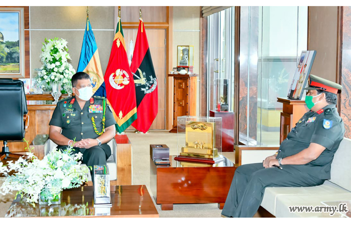 On the eve of his retirement from the Army after a distinguished military career of more than three decades, Major General Deepthi Jayathilaka, Commander, Security Forces - Mullaittivu, one of the proud soldiers-produced by the Sri Lanka Sinha Regiment (SLSR) received plaudits and best wishes for his future endeavours from none other than the Commander of the Army, Lieutenant General Shavendra Silva this morning (14) at the Army Headquarters.