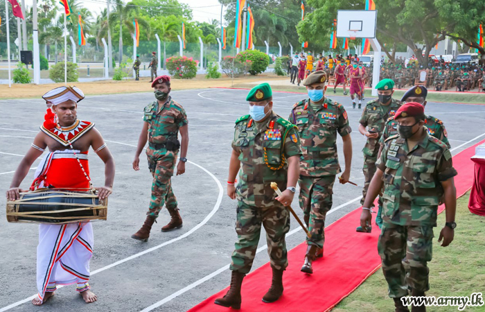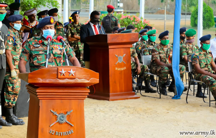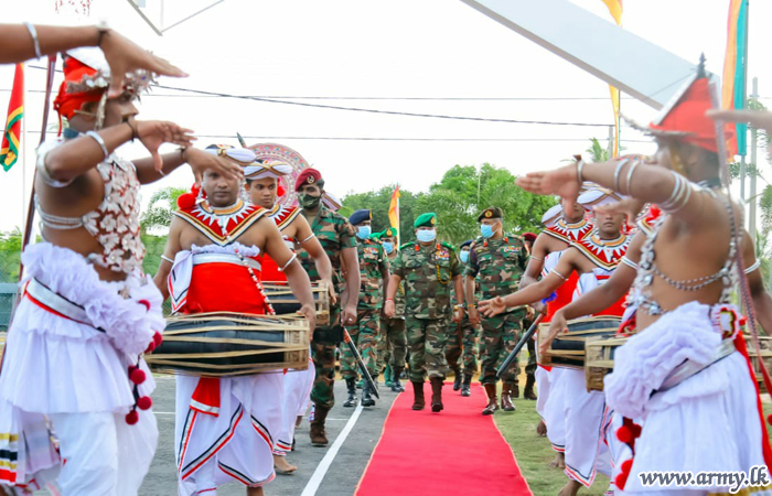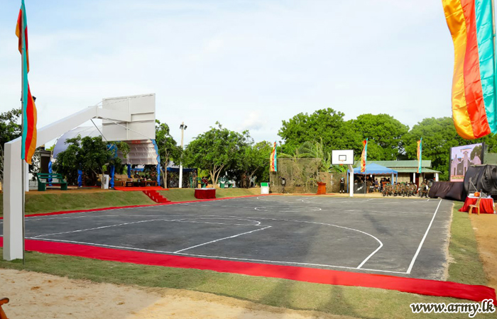 After 15 (V) Gajaba Regiment troops greeted the visiting Lieutenant General Shavendra Silva to a drive-past Guard Turnout at the entrance, the 52 Division, GOC received the day’s VIP for opening of the basketball court. To leave memories, the day’s Chief Guest was then invited to unveil the plaque and formally declare it opened.
