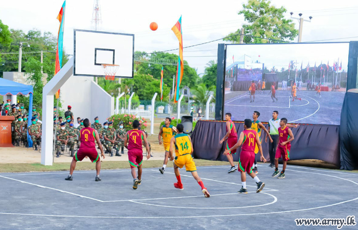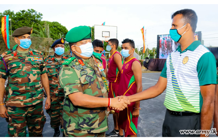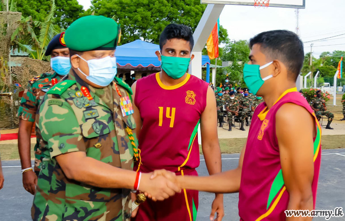 At the same time, the Commander was introduced to team players and referees who were set to play the first exhibition match in the new basketball court. Symbolizing the formal warming of the basketball court, the inaugural match continued for about 45 minutes in the presence of the day’s Chief Guest. Before his exit, the day’s Chief Guest was also invited to distribute awards to players who participated in the match.