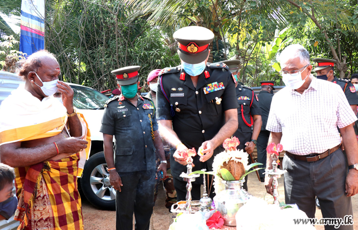 On being informed that one Mrs K. Sahida in the said area was undergoing hardships with her family members, Major General Ruwan Wanigasooriya, Commander Security Forces -Jaffna turned to the donor as he is interested and generous enough to donate one more house to a needy family. Troops of 9 Sri Lanka Light Infantry under 511 Brigade under the supervision of the 51 Division offered their manpower and technical know-how to this worthy cause.