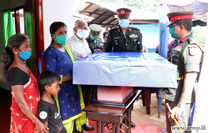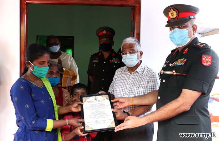 Meanwhile, the same donor, impressed with the enthusiasm of the troops and the low-cost involved offered his sponsorship for construction of one more house for another deserving family living in the general area of Kodikamam South on Sunday (19) around the same time of the opening of the new home at Uduvil South.