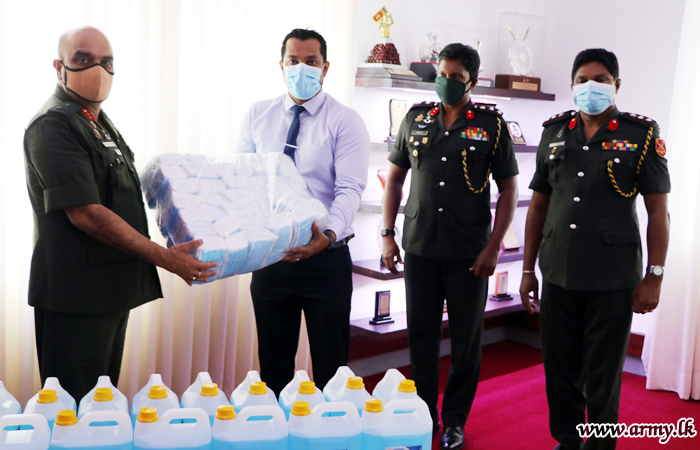Security Force Headquarters - West (SFHQ-West) through its civil affairs office received a large stock of PPE overalls, sanitizers and other health safety equipment to the value of Rs 1 lakh from the Sri Bosath Aarya Shravaka Padanama, a non-profit Buddhist organization.