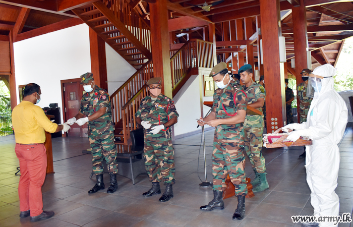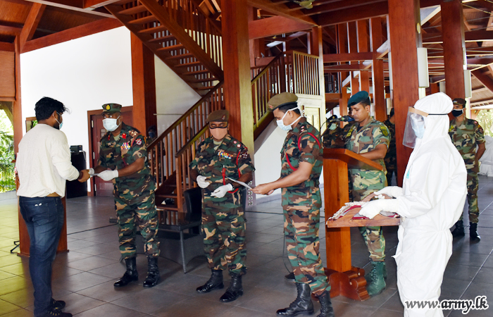 A group of 6 Sri Lankan Singapore-based expatriates, impressed with the Army management of the Quarantine Centre at Paradise Hotel at Habarana, made a cash donation towards the Presidential Secretariat’s ‘COVID-19’ Fund through the 53 Division HQ at Habarana on Thursday (23).