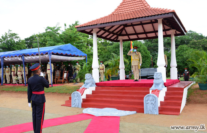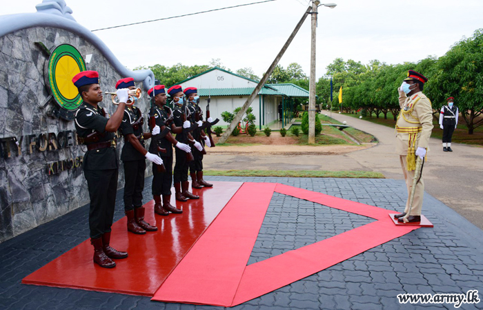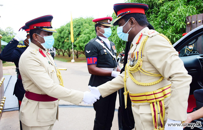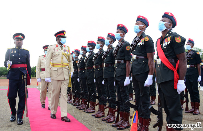 Soon after his entry into the premises, a formal Guard Turnout greeted the new Kilinochchi Commander at the entrance before he was received by senior Officers and conducted to the parade ground to receive honours in the formal Guard of Honour, presented on his behalf. In accordance with military traditions, the new incoming Kilinochchi Commander from the special dais received the salute afterwards after reviewing the parade with the parade commander.