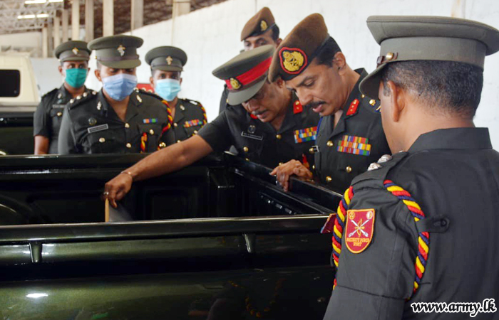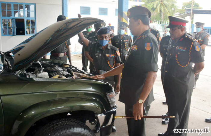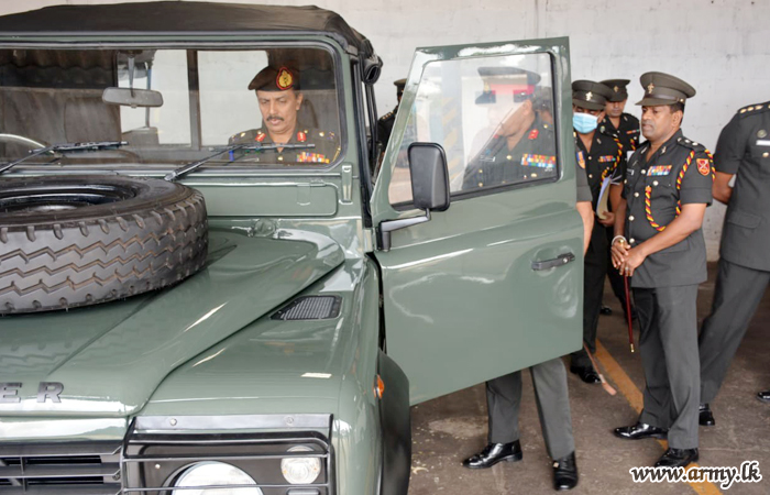 During his stay in the workshop, he closely inspected a set of completely repaired vehicles in the Katubedda workshop and a few sent for repairs from the EME Base Workshop at Udawalawa.