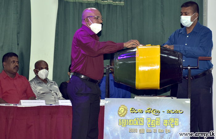 The raffle draw of the ‘Sinha Mela Education Trade and Musical Extravaganza’ of the Sri Lanka Sinha Regiment got underway on Friday (31) at the Regimental HQ of the Sri Lanka Sinha Regiment (SLSR) at Ambepussa, chaired by Commander Security Forces - West and Colonel of the Regiment, SLSR Major General Jayantha Seneviratne who graced as the Chief Guest.