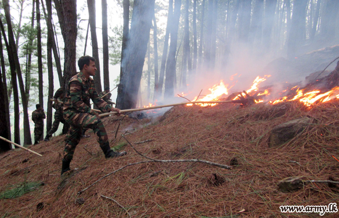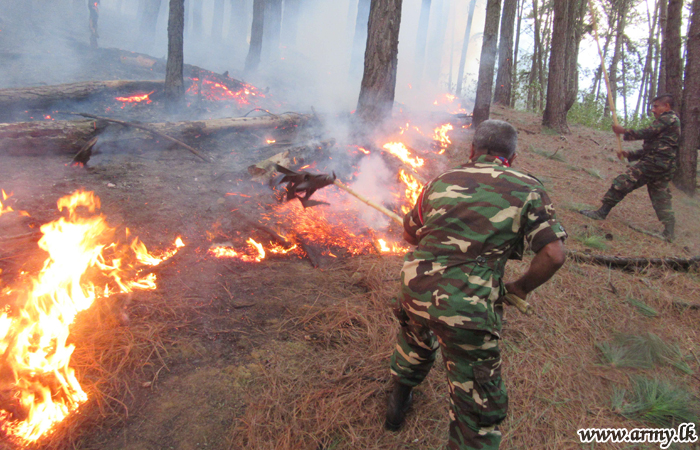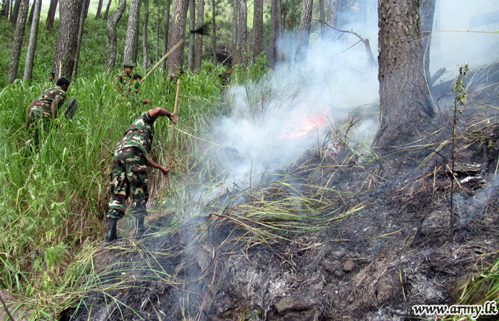 Troops of the Security Forces Central (SF-C) rushed and assisted to extinguish a sudden bush fire that erupted in the general area of Kalu Ambathenna in Diyatalawa Divisional Secretariat on Wednesday (05).