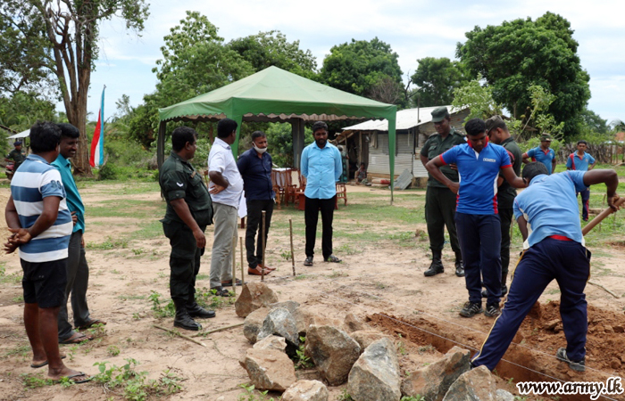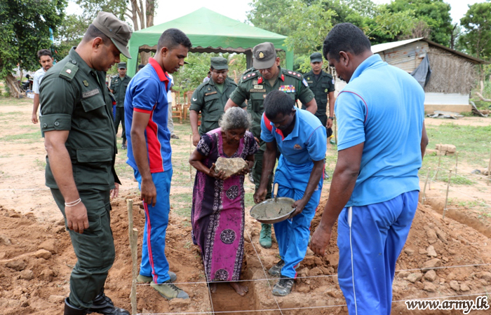 682 Brigade Commander, Colonel Chaminda Galappaththi of the 68 Division Headquarters on 1st August donated a financial assistance for a needy woman to purchase electricity for the new house, which is to be erected by Army troops of the 68 Division in the general area in Maligathivu Grama Niladhari Division after laying the corner-stone for the new abode.
