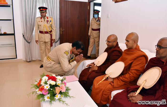 Symbolically inaugurating his office, Major General Pradeep Silva afterwards initialled the first official document, pertaining to his duties while the members of the Maha Sangha invoked blessings on the new Commander by chanting 'Seth Pirith'.