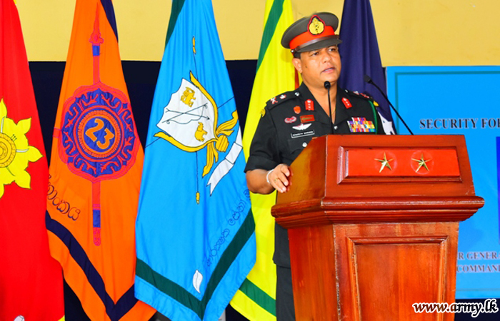 The day’s proceedings commenced with the outgoing Security Forces Commander being greeted in a Guard Turnout by the troops of the 4th Battalion, the Gemunu Watch. Thereafter, the Security Forces Commander addressed the troops where he thanked everyone for the dedication and cooperation extended to achieve desired results on the Eastern Theatre as a cohesive military force and urged them to continue the good job of work. Further, he insisted preserving the image of the Army through maintenance of highest standards of discipline at all levels and functioning in all aspects efficiently and effectively.