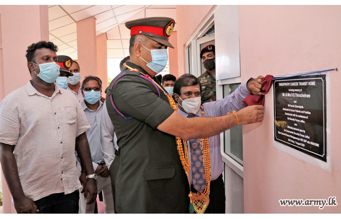 Sri Lanka Army in Jaffna extending its support to another request of the Regional Directorate of Health Services - Jaffna, constructed a new accommodation building for patients at Thelippalai Cancer Hospital for the benefit of resident Cancer patients who reach there for treatment, radiation procedures and therapeutic needs from every corner of the peninsula.
