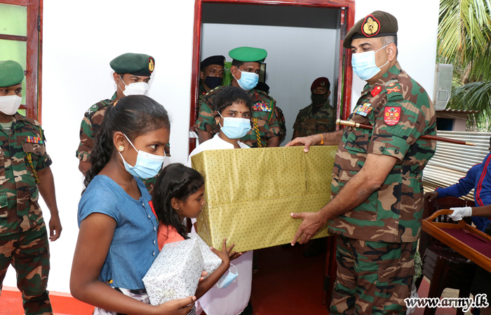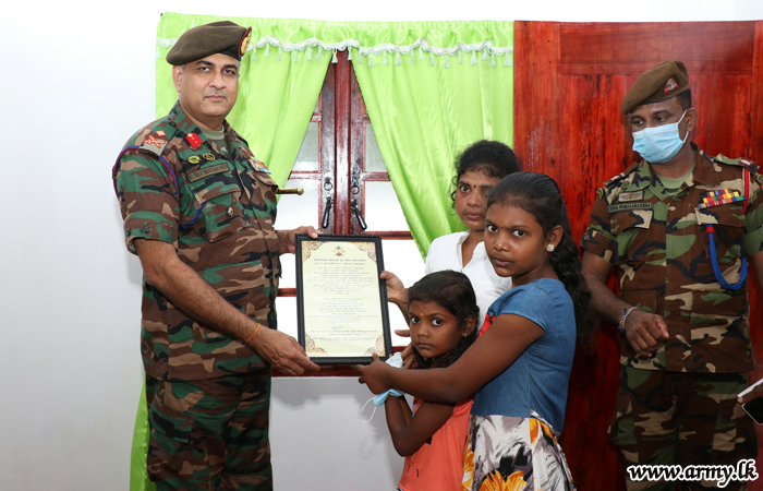 The new house thus built for the needy family was vested in the deserving family on Thursday (06), along with a stock of essential home appliances during a simple ceremony, attended by the Commander Security Forces -Jaffna, Donors, Officers and Other Ranks, relatives of the family and a couple of senior citizens in the area.