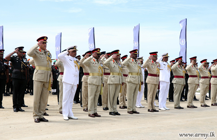 The day’s Chief Guest laid a floral wreath at the Araly Point monument and paid his tribute to those great warriors who added indelible chapters to the legacy of the Sri Lanka Army. Heralding of the Last Post and Reveille as troops stood on attention, the memory of those great sons of Sri Lanka was refreshed and venerated in flower.