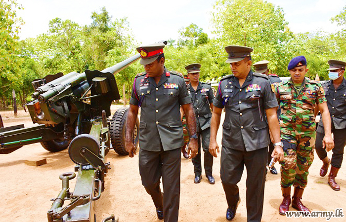 Major General Sampth Kotuwegoda, the newly- appointed Commander Security Forces-Kilinochchi on Tuesday (11) was hosted to military honours when he made his first formal visit to his mother regiment, 8 Sri Lanka Artillery Regiment (Medium) HQ in Kilinochchi which he commanded during high intense battles during the Humanitarian Operation from 06 March 2007 to 31 December 2007 and also to the Armour Coordinating Headquarters in Kilinochchi.