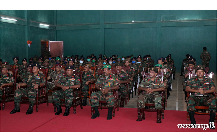 On Wednesday (12), he paid his first formal visit to the 52 Division HQ in Mirisuvil to be received by Major General Sena Waduge, General Officer Commanding, 52 Division on arrival at the Division HQ. A Guard Turnout greeted him at the entrance in keeping with military traditions before he was ushered in. A subsequent comprehensive briefing on their responsibilities, presented by the General Officer Commanding paved the way for the visiting Jaffna Commander to talk to the 52 Division troops, all Brigade Commanders and Commanding Officers serving under the 52 Division. |