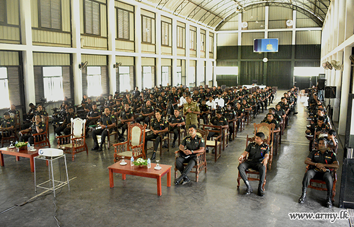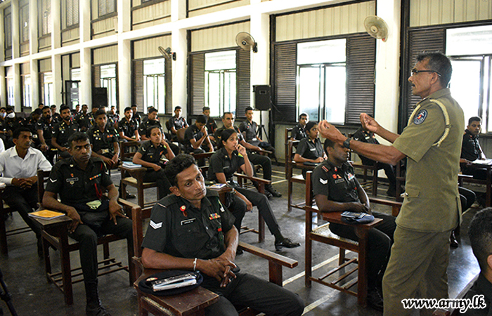 The Inspector of Police Mr. P.R.S.N.K Peramune, Counseling Officer, In-service Training Institute of Vavuniya to be in line with the ongoing educative projects, recommended by Lieutenant General Shavendra Silva, Chief Of Defence Staff and Commander of the Army and the Adjutant General Branch at Army Headquarters delivered the lecture on the topic, 'Effects on use of Narcotics and Leading to better family life through Prevention'.