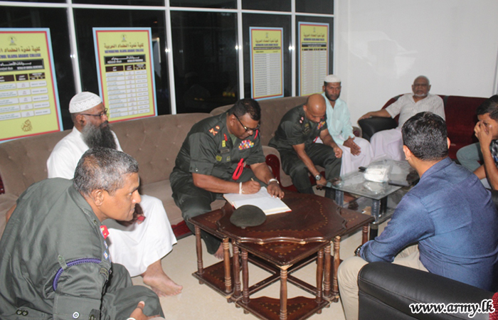 The Commander, 223 Infantry Brigade, Brigadier Shantha Perera, Commanding Officer of 15 SLLI, Lieutenant Colonel S.M.D.N Samarakoon and 100 attendees, including Muslim Maulavis, Chairmen, Secretaries of Muslim Mosques, Chairman of the Fishing Society and members of Muttur Fisheries Association also attended the cordial meeting. |
