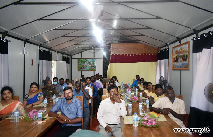 The conference also explored possibilities of finding ways to raise and improve living standards of the people and receiving reasonable price for their harvests, etc. The General Officer Commanding 65 Division headed the conference. It was attended by the Commander 653 Brigade, Commanding Officer 17 (Volunteer) Sri Lanka Light Infantry, Divisional Secretary of Thunukkai, Medical Officer at Base hospital - Mallavi, Ayurveda medical officer at Ayurvedic medical center - Yogapuram, Chief Engineer of Irrigation Department - Vavunikulam, Chief Public Health inspector in Mallavi, Officer in charge of the Police station - Mallavi, Principals of Mallavi central college and Therankandal G.T.M School, Managers of all government/ private banks in Mallavi, all Grama Seva Officials in the area and several other relevant government authorities, including a couple of leading civilians in the area.