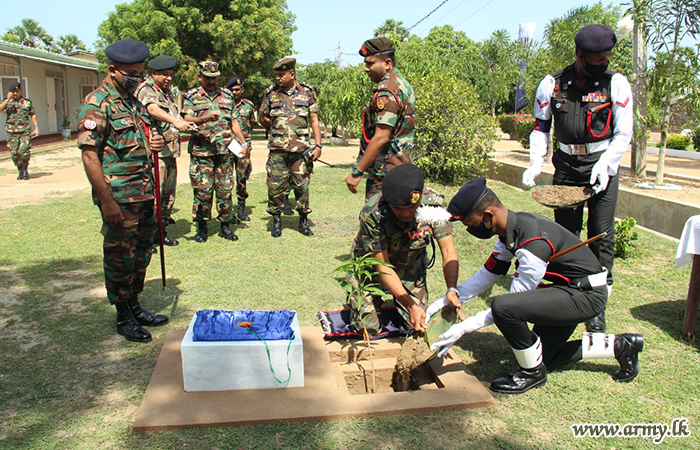 Major General Senarath Yapa addressed the troops in the Battalion Headquarters and a tree sapling was planted in the camp premises in parallel with the visit.