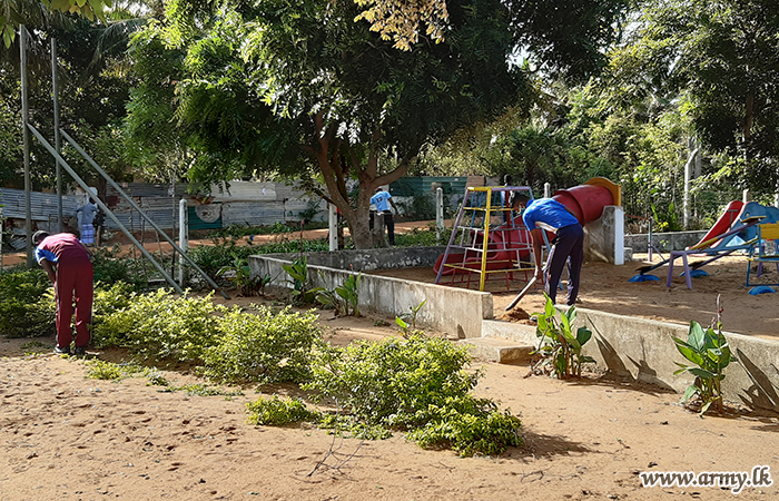 Parents and teachers of the pre-school too joined hands with the troops. Commander, Security Forces MLT and the General Officer Commanding, 68 Division extended their blessings to the project. |