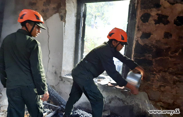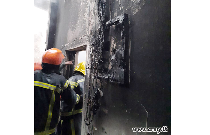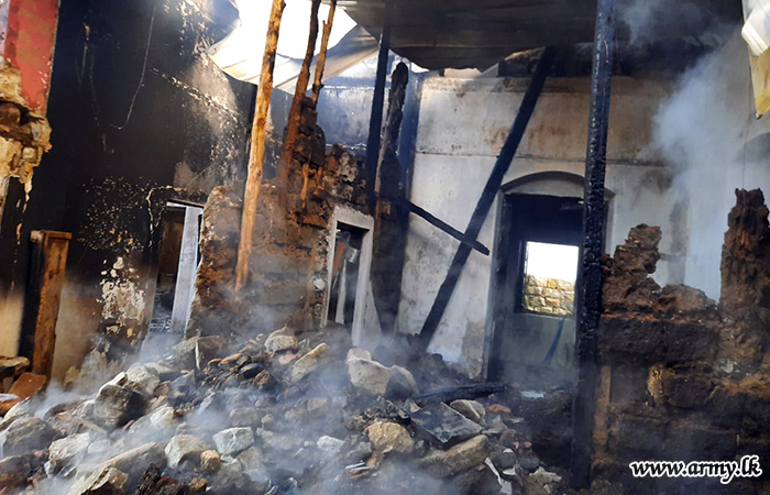 A platoon of troops from 3 (V) Sri Lanka Sinha Regiment took immediate action and doused the fire under the supervision of their Commanding Officer, 3 (V) SLSR.