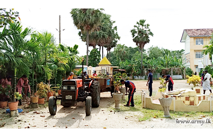 On the directions of the Major General Sampath Kotuwegoda, Commander Security Forces - Kilinochchi, General Officer Commanding, 65 Division, Major General Hemantha Bandara and under the supervision of the Brigadier Janaka Udowita, 653 Brigade Commander, those troops completed the Shramadana project with the support of some teachers, parents and civilians. |