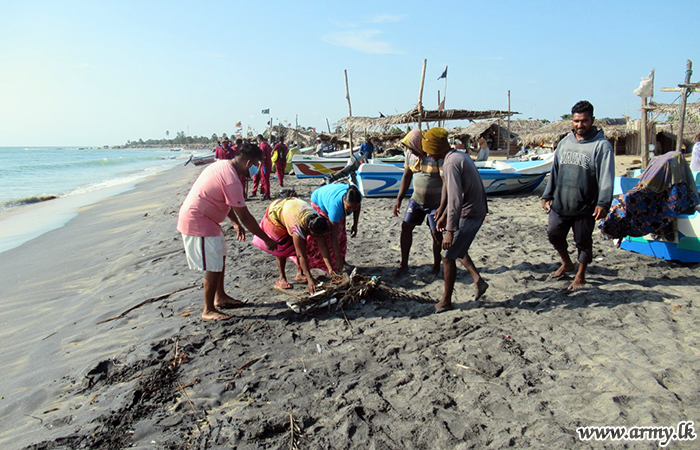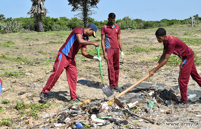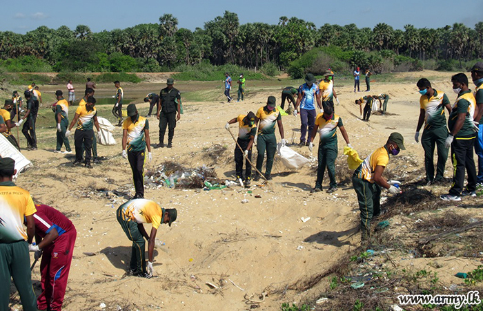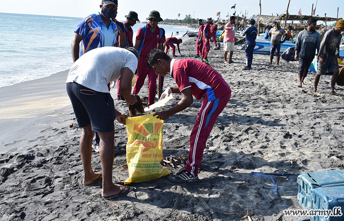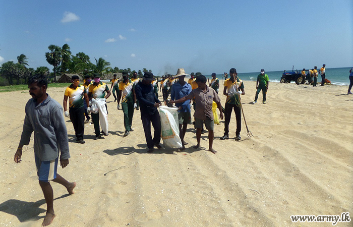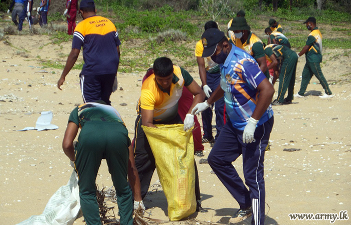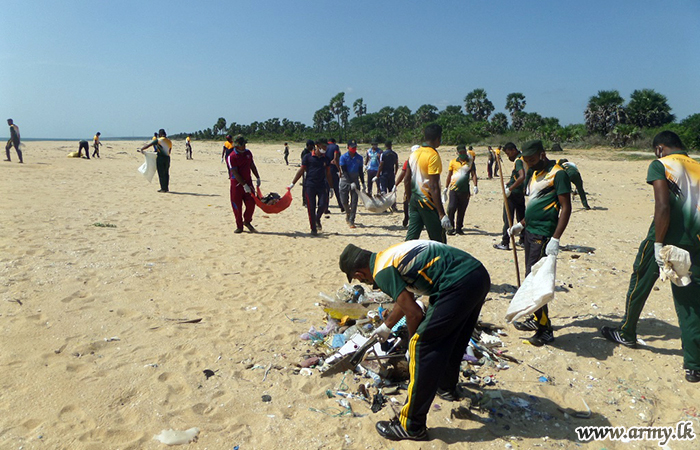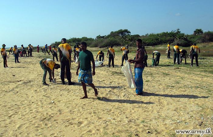 Troops serving under the 593 Infantry Brigade of the 59 Infantry Division of the Security Force Headquarters - Mullaittivu took part in a programme to clean up the coastal belt in their respective areas from Nayaru to Chemmalai on Saturday (22).