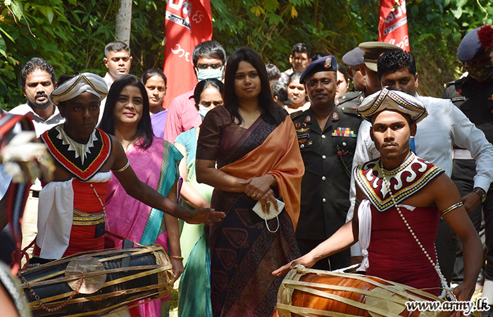 On Friday (21), Major W.A.K.U Chandika, Commanding Officer, 3 GW graced the auspicious inaugural house-warming ceremony as the chief guest, together with Mrs Needra Weerasinghe, Head of the MTV and MBC Network representing the 'Sirasa Niwasa' and vested the new house in the beneficiary, Ms Pradeepa Priyangani.