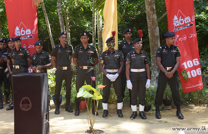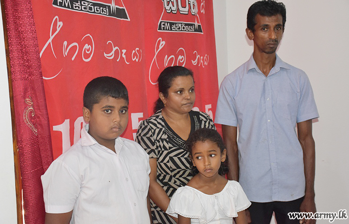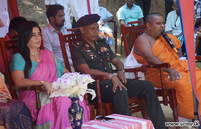 The sponsors, ' Sirasa Niwasa' in order to mitigate the costs of the project turned to the Commander of the Army in search of Army manpower and their construction skills for erection of this much-needed house as part of their Civil-Military coordination project. In accordance with ancient traditions, the day's chief guest and the sponsors at the auspicious minute unveiled a plaque, participated in rites and rituals and gifted the family with several essentials.
