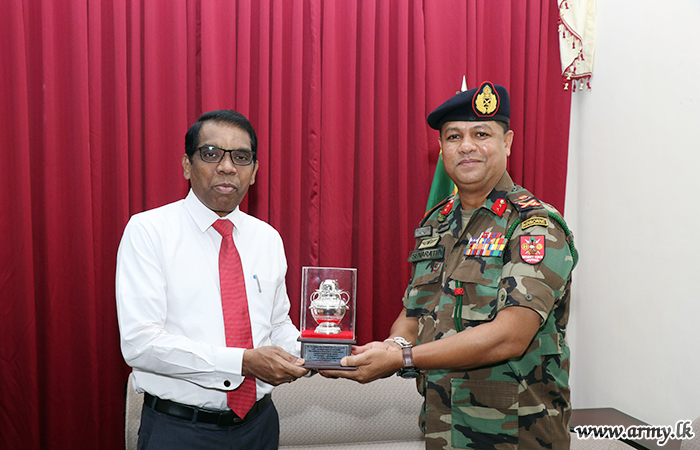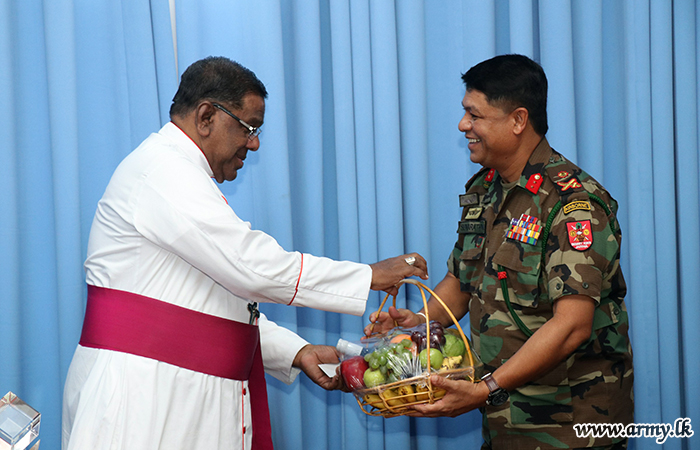 The newly-appointed Commander, Security Forces - Jaffna, Major General Senerath Bandara had a formal audience with Bishop of Jaffna His Lordship Right Reverend Dr Justin B Gnanapragasam and called on Mr Kanapathipillai Maheshan, District Secretary for Jaffna on Monday (24).