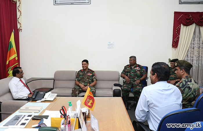 During the meeting at the District Secretariat, the District Secretary discussed the present progress of the Civil-Military Coordination and Reconciliation in the Jaffna peninsula with the Security Forces Commander. A few Senior Army Officers were also present at the occasion. |
