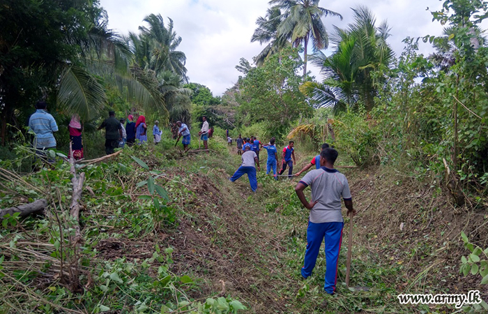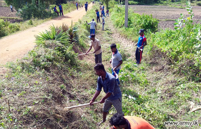 Troops of the 7 Sri Lanka National Guard (SLNG) and the villagers of Koddeikaddeyarkulam along with the officials of the Farmers’ Association in a ‘Shramadana’ community project cleaned up the 2.2 km long Koddeikaddeyarkulam irrigation canal on Sunday (23).