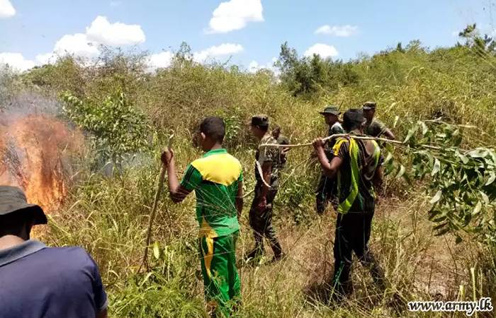 16 Gajaba Regiment troops immediately reached the location on the directions of Brigadier Senaka Kasthurimudali, Commander, 143 Brigade and doused it after joint efforts. |