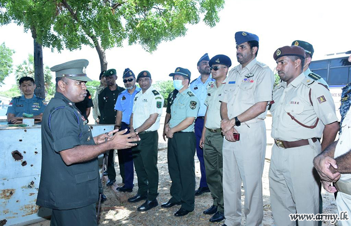 Eighteen foreign military student Officers from Bangladesh, China, India, Indonesia, Maldives, Nepal, Oman, Pakistan, Rwanda, Saudi Arabia and Sudan currently following the Staff Course No. 14 at the Defence Services Command and Staff College (DSCSC) in Sri Lanka along with their family members were taken on a tour to the Security Force HQ - Kilinochchi and Security Force HQ- Mullaittivu on Monday (31) as part of their familiarization tour.