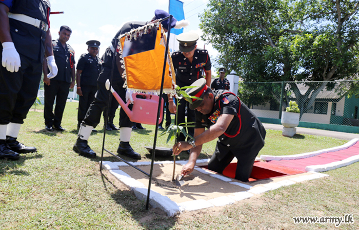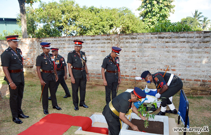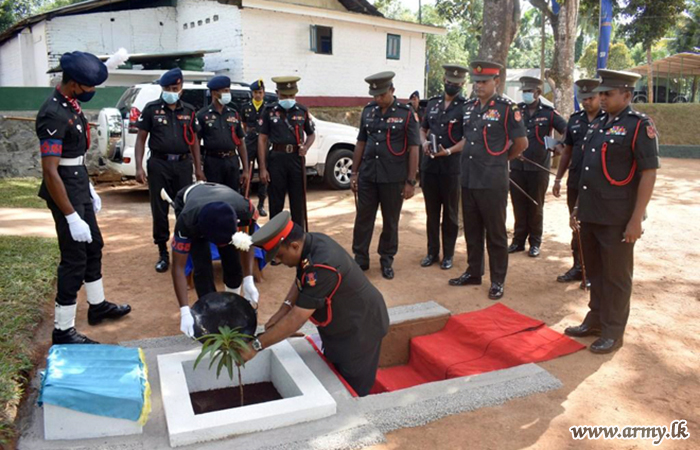 Meanwhile, he visited RHQ Battalion at Boossa on Monady (17). The day’s Chief Guest was greeted to a Guard Turnout at the entrance to the premises soon after his arrival in accordance with military traditions. Afterwards, Colonel of the Regiment planted a sapling to mark his visit. Subsequently, Colonel of the Regiment addressed the troops and had a close look at the library and sleeping bed project also.